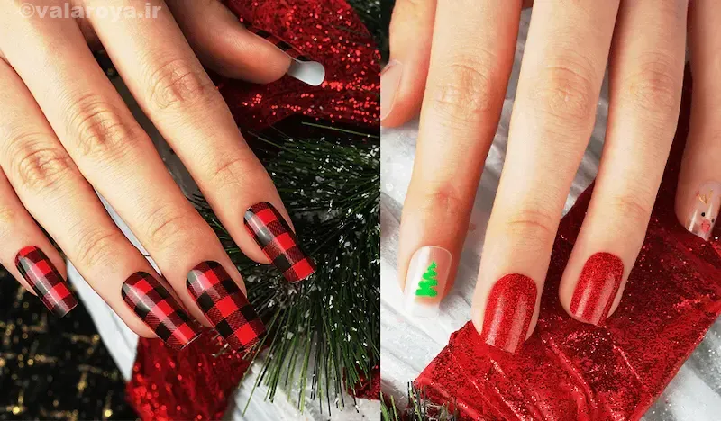 | طرحهای گرافیکی | ترکیب قرمز و سبز | افزودن جلوهای ویژه به ناخنها و انتقال حس یلدا. |