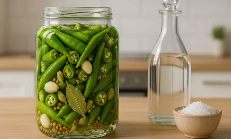 اگر عجله داری، می‌توان ترشی فلفل سبز فوری را آماده کرد. در این مدل، محلول سرکه و نمک را روی فلفل‌های خشک‌شده داغ می‌ریزند. سپس شیشه را به مدت ۱۵ تا ۲۰ دقیقه در قابلمه آب جوش قرار می‌دهند تا حرارت به عمق برسد. این کار باعث می‌شود ترشی در کمتر از دو روز آماده مصرف باشد. نکته مهم، استفاده از شیشه مقاوم در برابر حرارت است تا ترک نخورد. پس از سرد شدن کامل، در یخچال بگذار تا رنگ تثبیت شود. این روش برای مواقعی مثل مهمانی یا رستوران‌های سریع سرو مناسب است. اگر می‌خواهی تندی ملایم‌تری داشته باشی، قبل از ریختن سرکه، مقداری شکر و نعناع خشک اضافه کن.