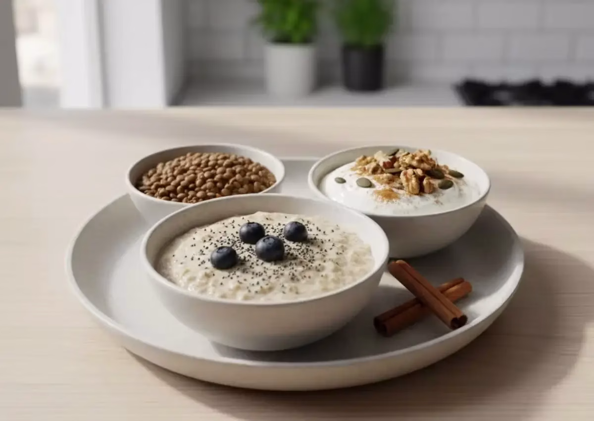 یک پیمانه عدس را با دو پیمانه آب بجوشانید تا نرم شود. سپس کمی دارچین و یک قاشق روغن زیتون اضافه کنید. این عدسی با GI پایین، جذب قند را آهسته میکند. دارچین نیز به حساسیت انسولین کمک میکند و طعم ملایمی میدهد. هر پیمانه عدسی حدود ۱۸ گرم فیبر دارد و تا ۴ ساعت انرژی پایدار فراهم میکند. میتوانید مقداری جعفری تازه یا آبلیمو اضافه کنید تا ارزش تغذیهای آن بالا رود. این وعده یکی از گزینههای اصلی در لیست طرز تهیه صبحانه برای افراد دیابتی است و به سادگی جایگزین نان میشود.