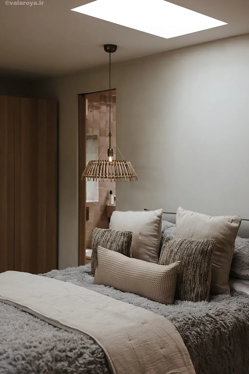 - از ملحفهها و روتختیهای ساده با رنگهای خنثی استفاده کنید.